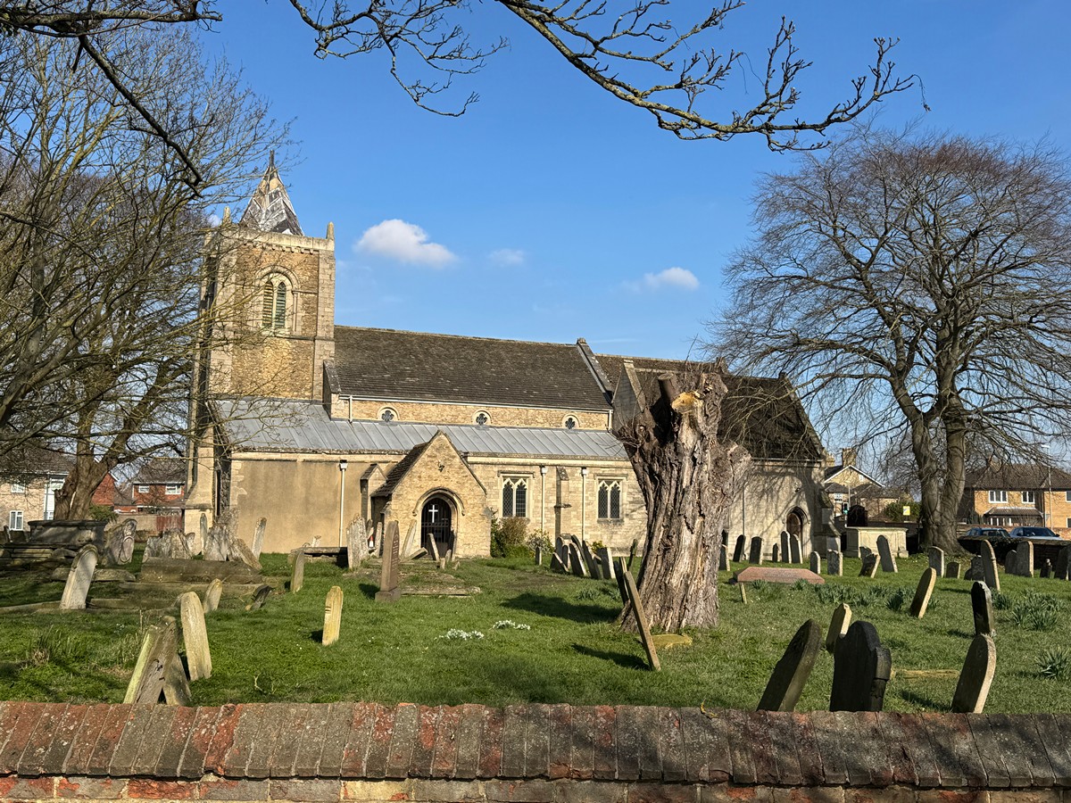 From Ferry Meadows I had a massive 10 minute drive round to the church at Yaxley. I’ve parked there before so I knew it would be safe for the car. What I didn’t know though, was that since my last visit at the start of 2022 there’s been some housing development in the area. As a result, the roads are all different, and there are new houses everywhere. The drive into Yaxley from Norman Cross used to be countryside. I know because I’ve walked along that stretch of road finding caches at least three times. But now it’s a link road between various new bits of Peterborough suburbs. And I got lost at the new road junctions. It took me a couple of goes to find the church, even though I could see it. Candleford was waiting there when I arrived. She’d not been there for long though.