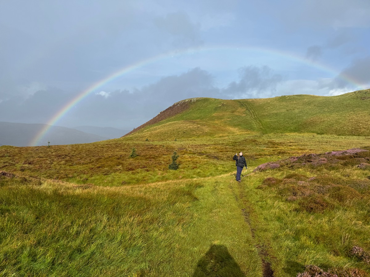 We caught a couple of short showers on the way up. In between the rain we were rewarded with a fine rainbow stretching over the hills as we faced west. By 10am we were back in the car park. I was ready for a warming coffee in the café before heading out for part two.