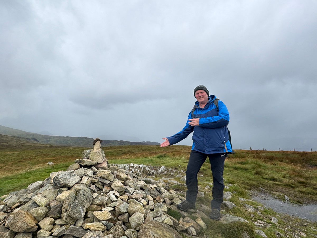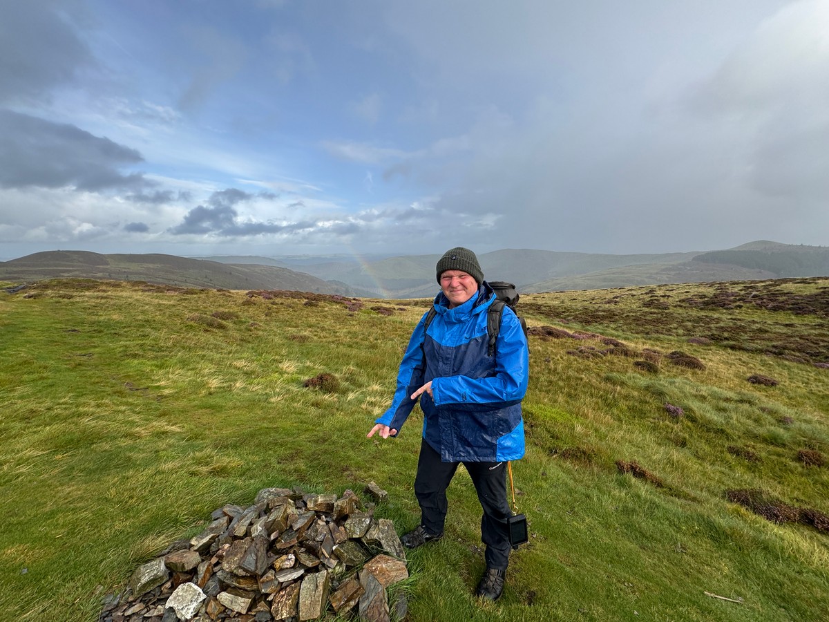 Whinlatter’s summit is a modest grassy dome, well clear of the dark ranks of plantation that cover the lower slopes. Up here the world opens out. The eye is drawn westwards to the dramatic skyline of Grisedale Pike, Hopegill Head and Whiteside, their ridges serrated against the sky. To the south, glimpses of the Coledale fells appear between the folds of ground, while to the north the mass of Skiddaw is just about visible over the back of Lord’s Seat and Broom Fell. It is not a lofty perch, but it has the feel of a vantage point, standing slightly apart, as if surveying the greater hills all around. With the passing showers and a rainbow lifting briefly across the valley, the summit felt alive with shifting light and atmosphere.